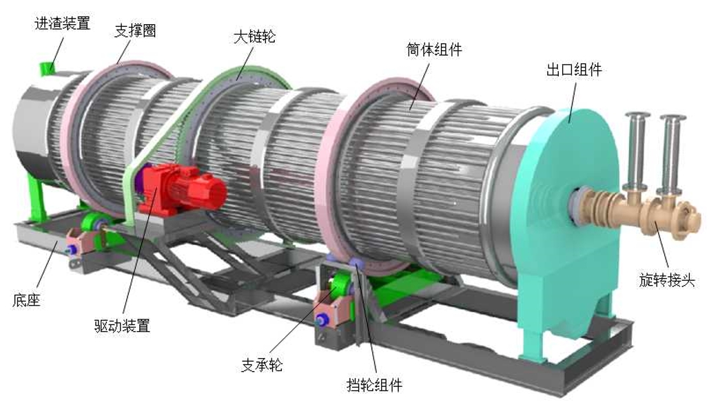 ·與同類產品相比較,單位長度換熱面積是拋灑型冷渣機的1.7倍,熱渣貼壁率增加70%,換熱系數是拋灑型冷渣機的1.7倍。